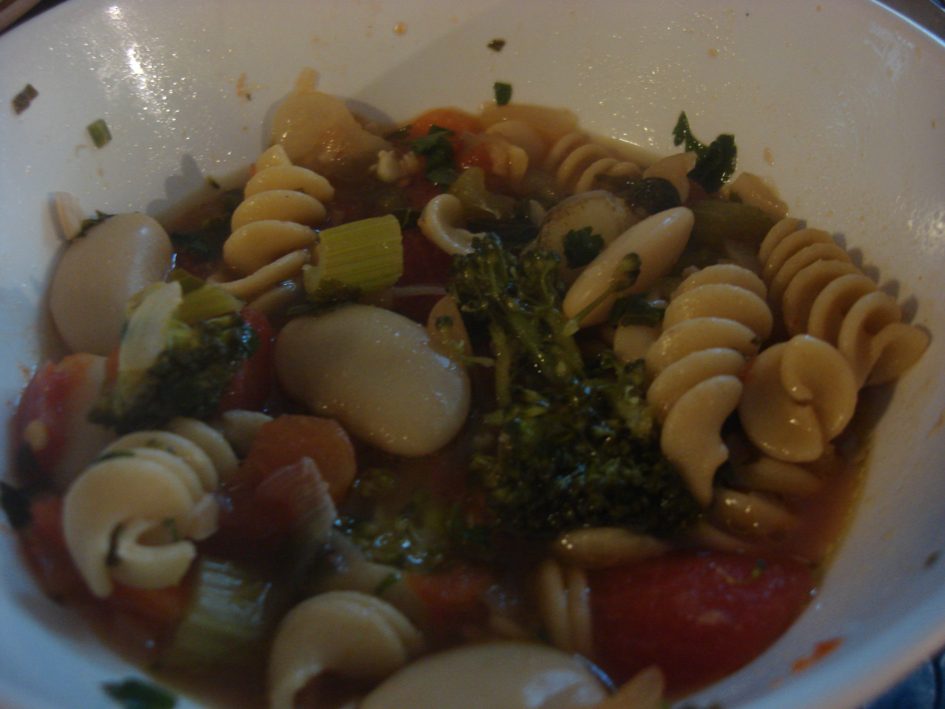 Feel like you can’t even deal with chopping fresh vegetables? Go ahead, empty out all the useless quarter bags of frozen vegetables buried in the back of the freezer. The tomatoe-y broth and herbs will make it all taste good, even if the texture leaves a bit to be desired.