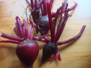 What happened was that each beet seed actually contains as many as eight little beet plants waiting to happen. We didn’t really understand that, didn’t thin them enough and ended up with fantastic, lush beet greens, but nothing at all in the root department.
