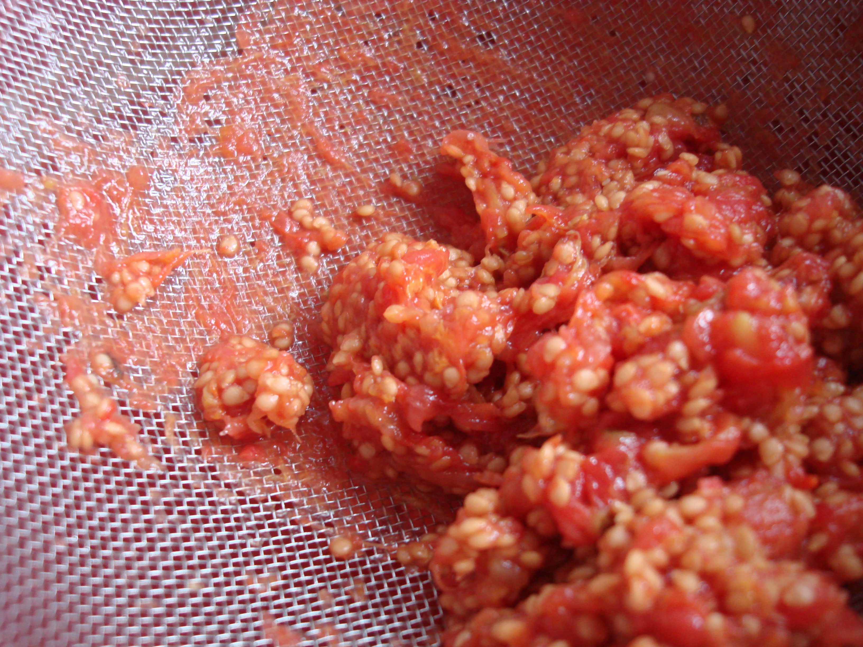 4. Have a fine sieve or food mill ready (optional, unless your tomatoes have a lot of seeds, because you will want to get rid of them.)