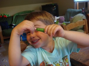 I just re-watched the trailer for Jamie Oliver’s Food Revolution here in the U.S. (preparing for a unit I do with my students) and you know what? I am going to accept that compliment without any qualification, because compared to those kids, my son is a food genius.