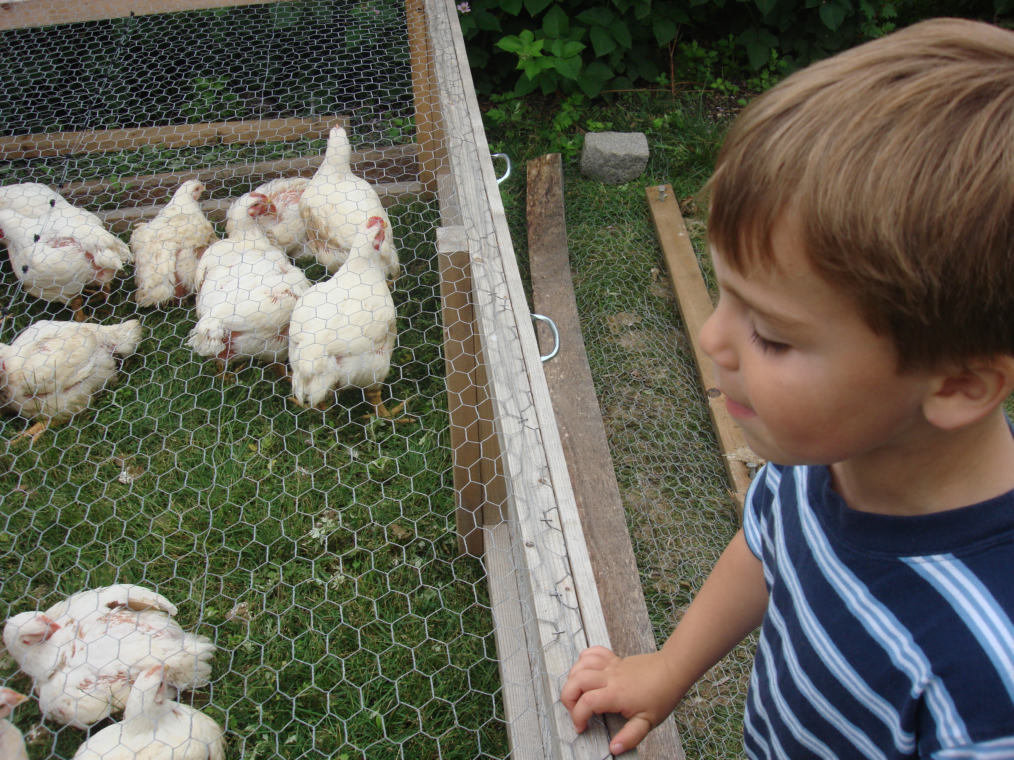 He has also gotten to know chickens on the farm. Funnily enough, he will make friends with the laying hens, but won’t even talk to the chickens that will be eaten. The fact that he is going to eat them doesn’t bother him otherwise, though. He is very comfortable at the top of the food chain.