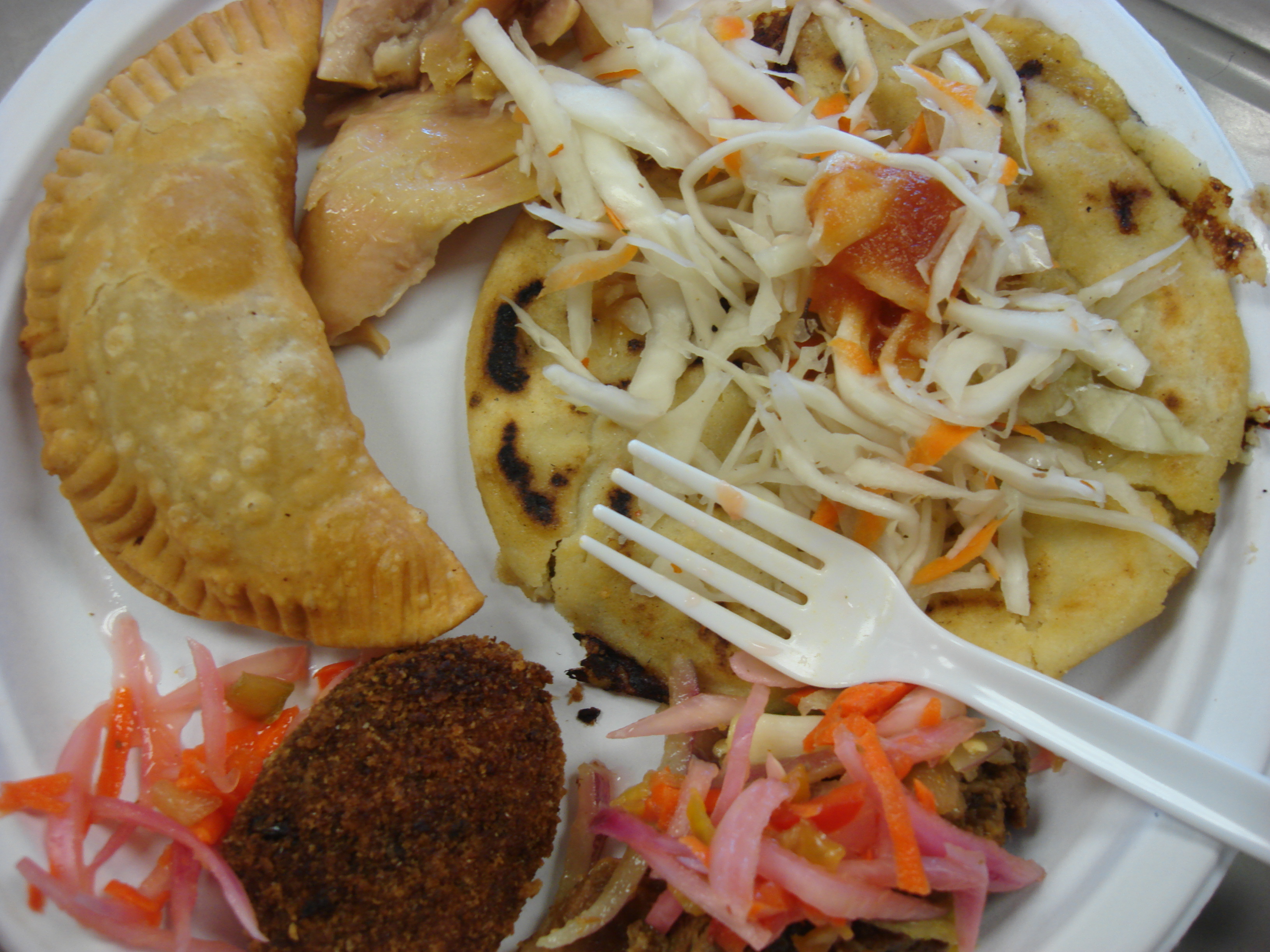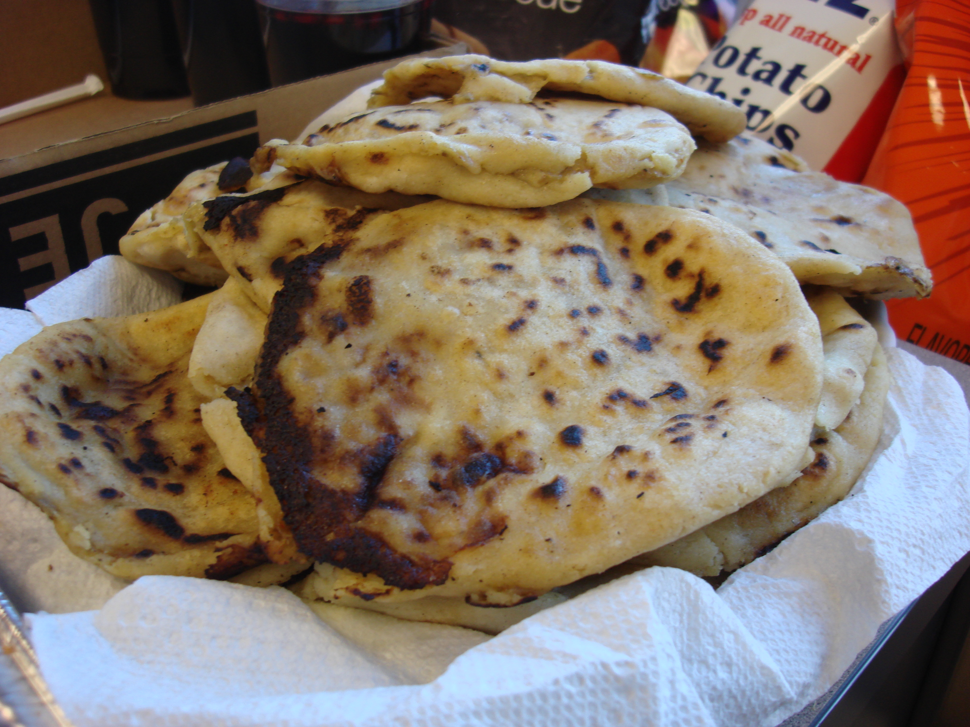 Pupusas, El Salvador (sort of a thick, soft tortilla or arepa, stuffed with cheese, sometimes beans or meat, and topped with a Salvadoran cabbage slaw)