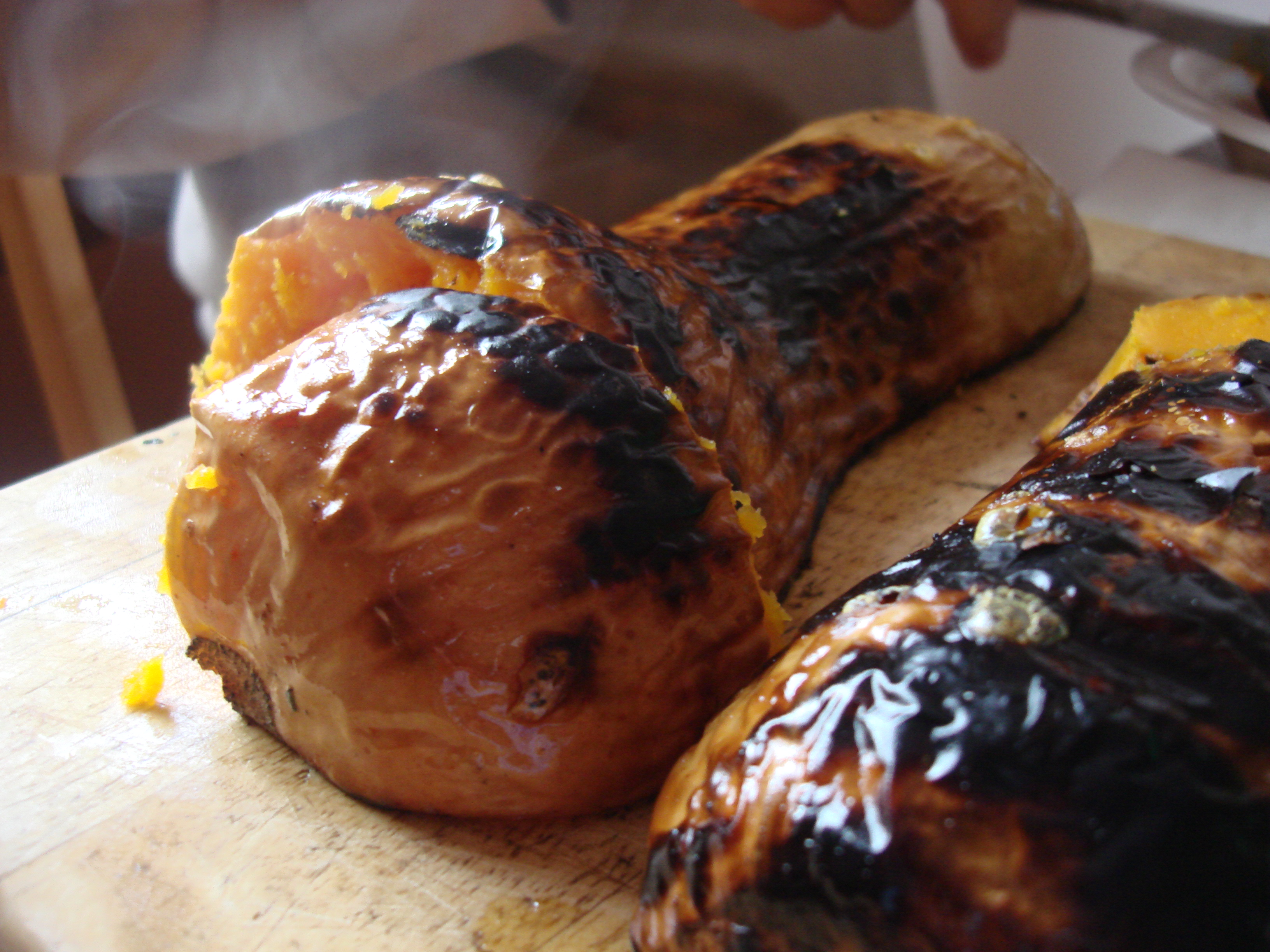 It was especially handy during the power outages following Hurricane Sandy, as butternut squash, a native American squash in the Cucurbita family, is in season, doesn’t need refrigeration and the grill runs on propane, independent of nationalgrid and LIPA. We have the power back, but grilled butternut squash is delicious any time! It also has loads of vitamins (especially A) and minerals (like potassium)