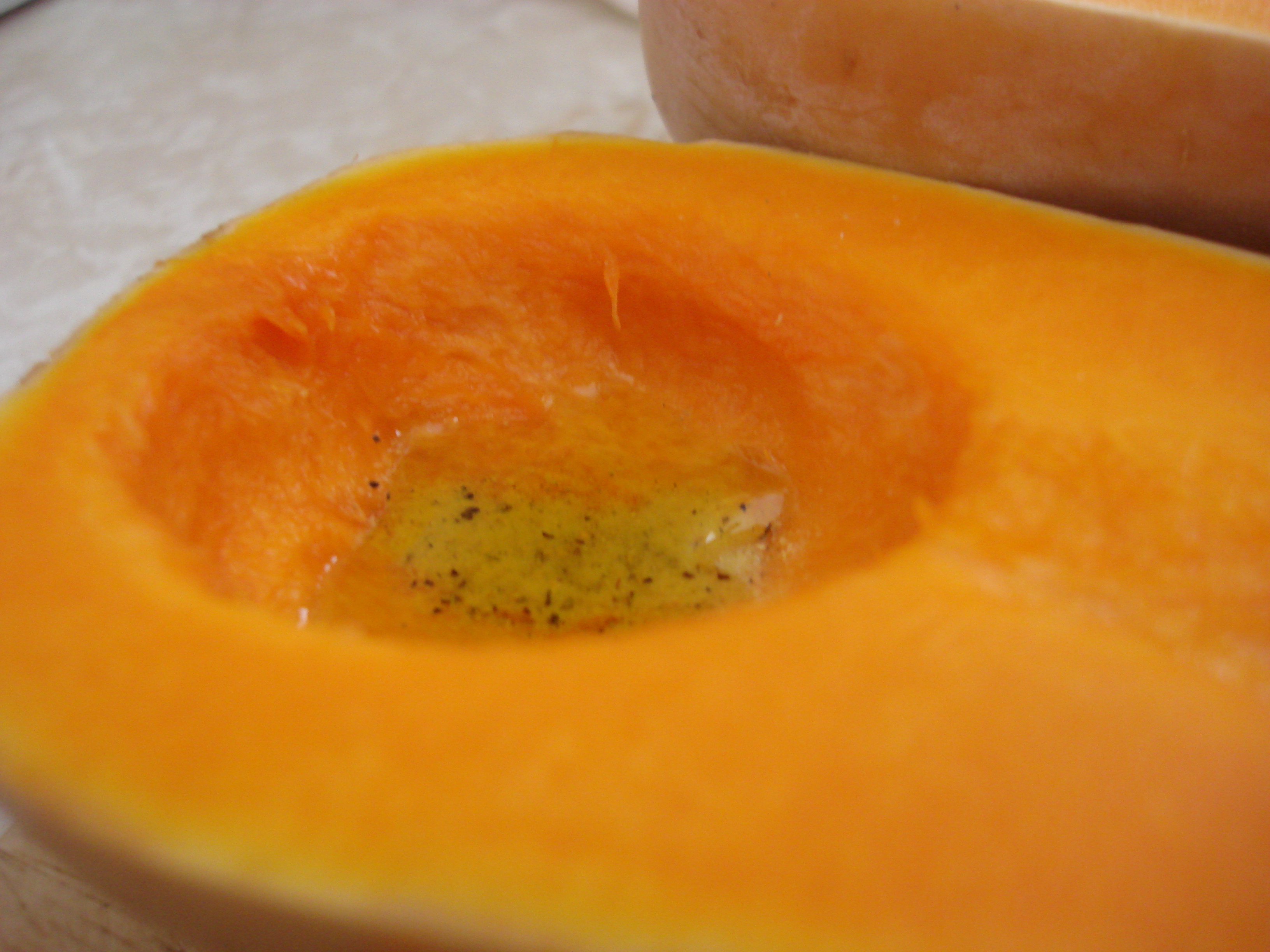 Slice squash in half lengthwise and clean out the seeds. Discard seeds or clean, dry and roast for a separate snack.