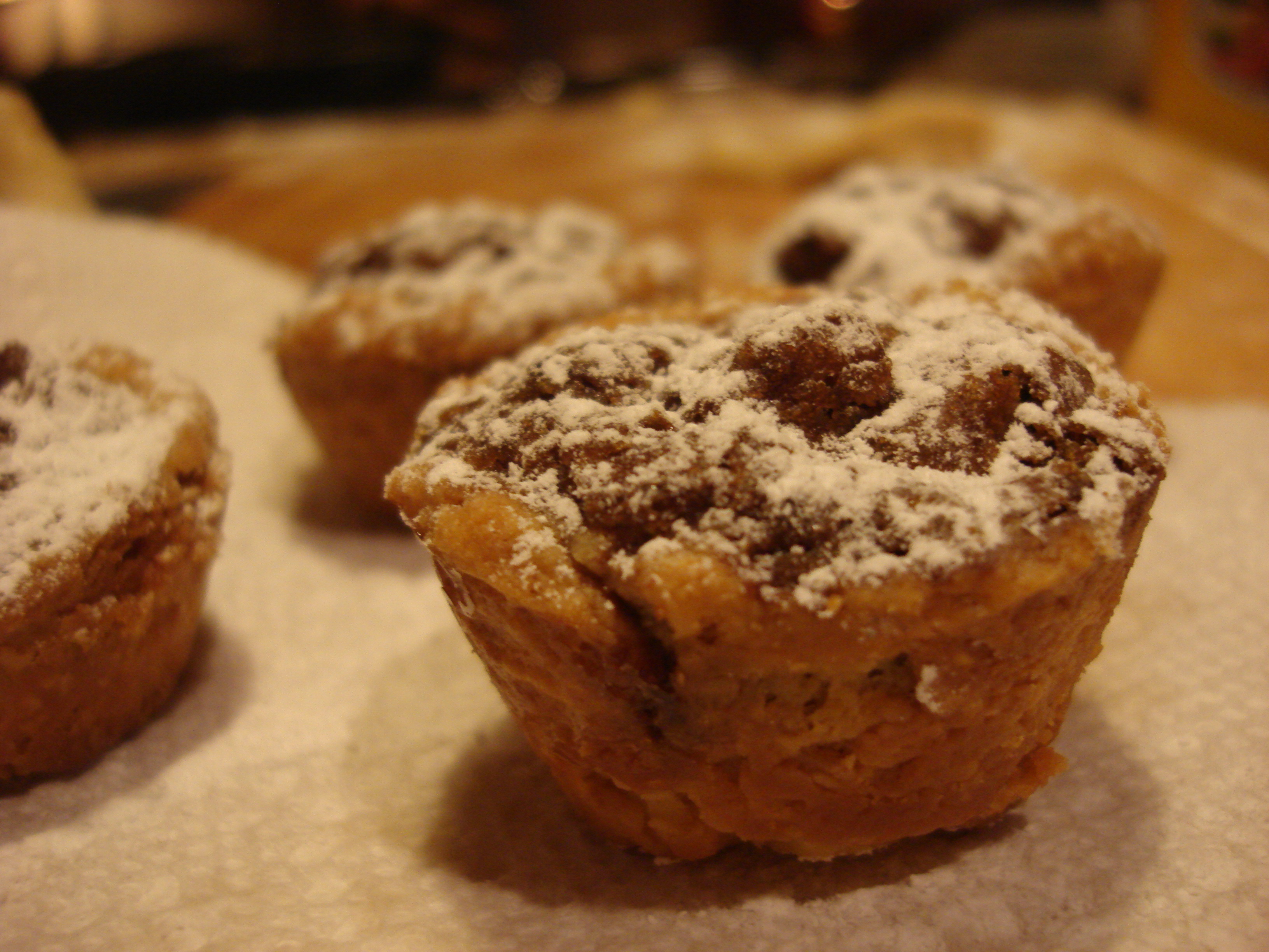 Put in oven for 35 minutes (less if your oven is powerful. When the crusts just begin to turn golden and the filling is bubbling a bit, they are ready. Remove from oven, cool, and sprinkle with confectioner’s sugar.