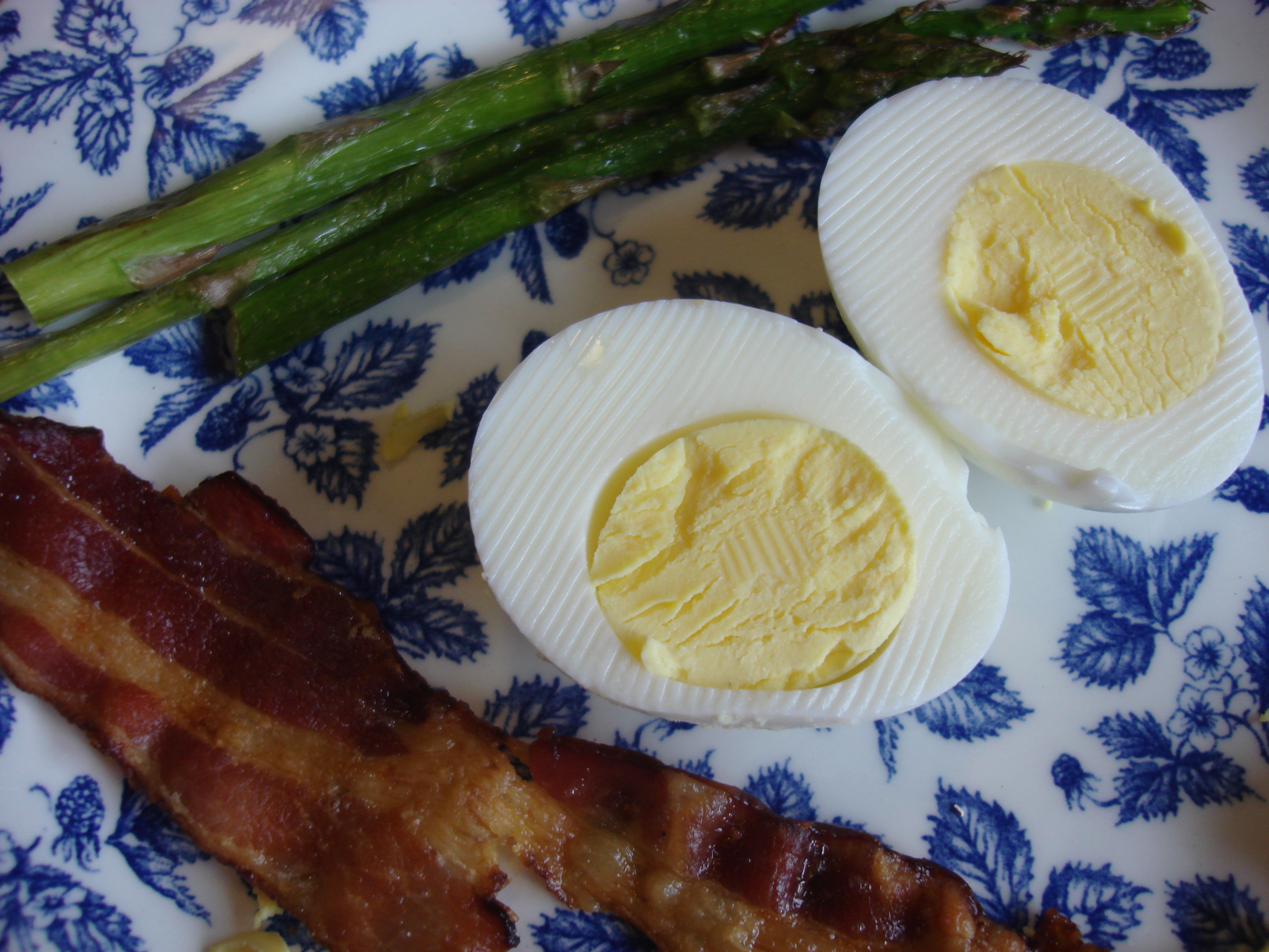 We love eggs around here and Leandro especially likes them hard-boiled. One of our favorite laid-back dinners is hard-boiled eggs with broiled asparagus. Olive oil to coat the asparagus and a bit of salt for both eggs and vegetable is all the seasoning we need.