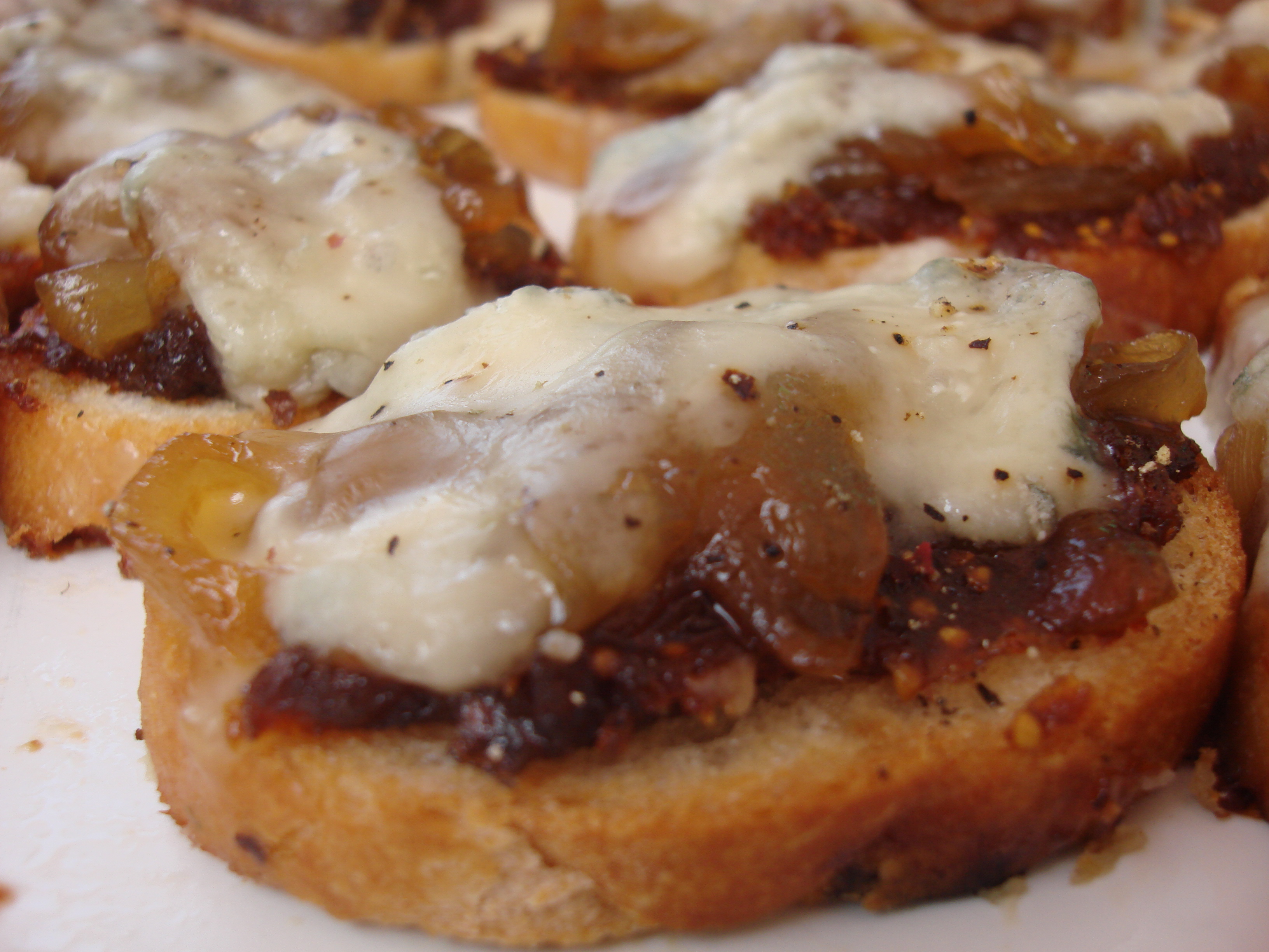 Crostini with Fig Spread, Caramelized Onions and Gorgonzola