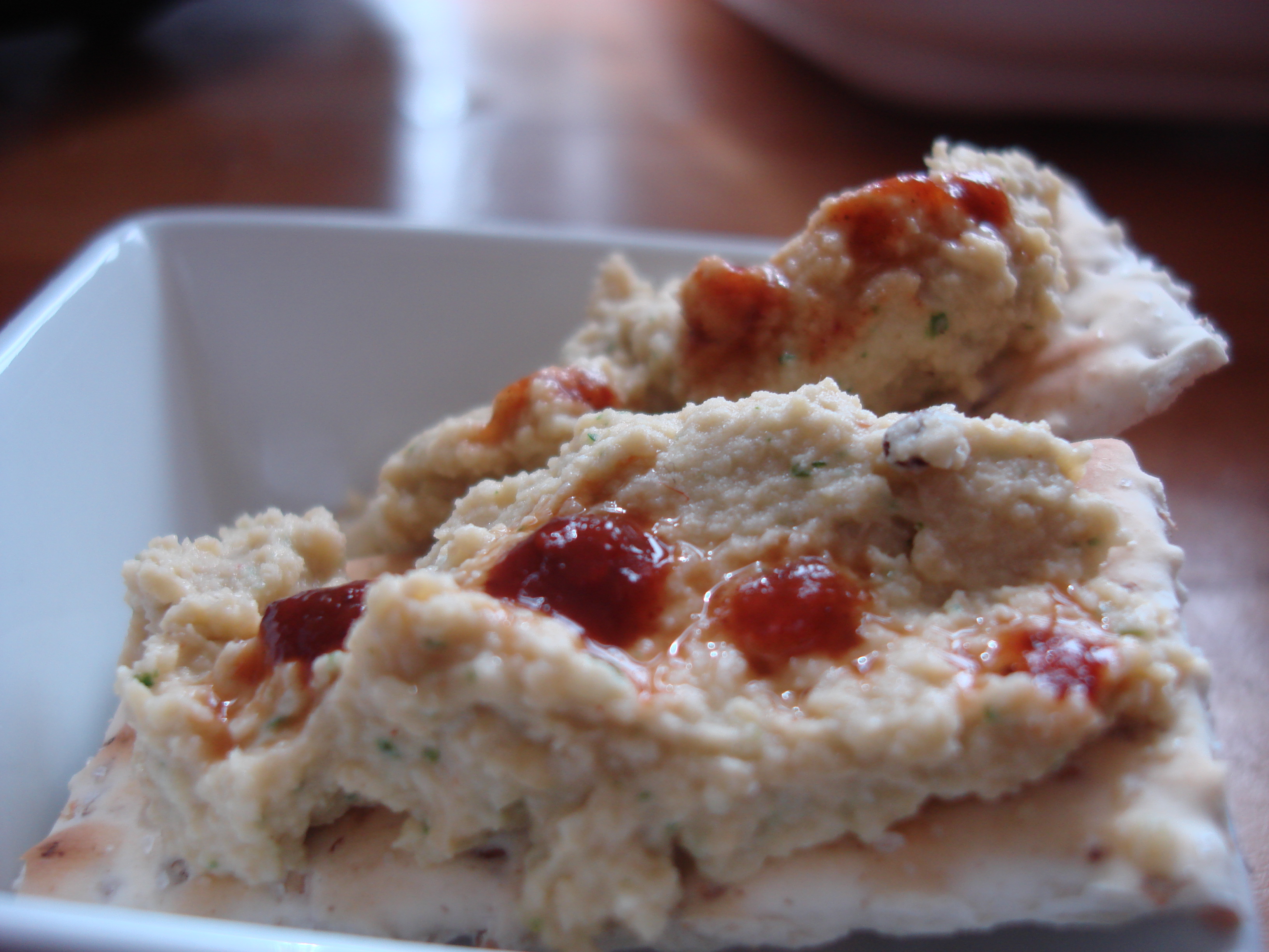 On crackers, with sriracha