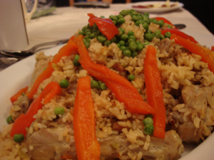 Piled high in a platter and garnished with roasted red pepper and peas, this is a Puerto Rican classic!