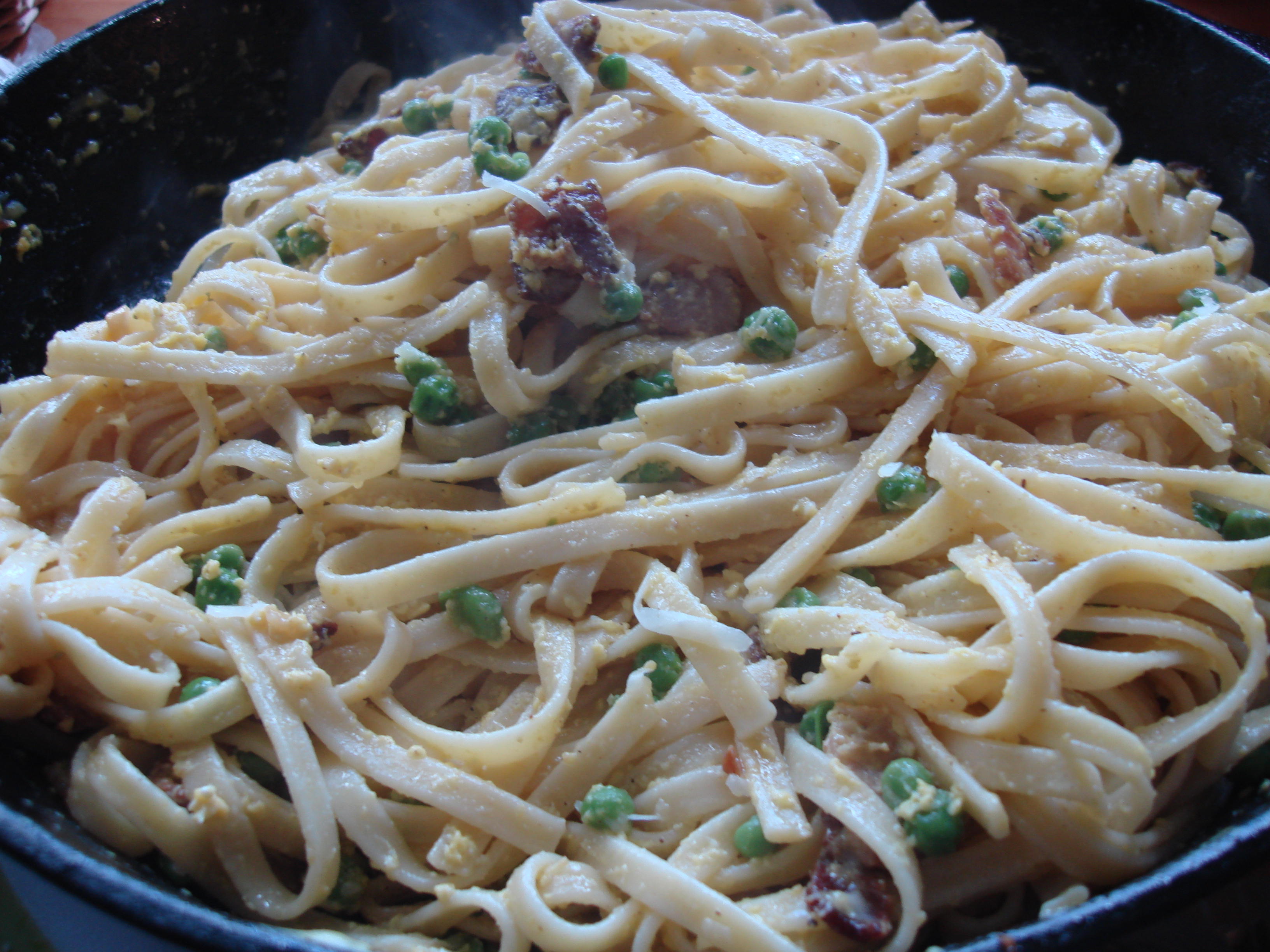 So the following Pasta with Chorizo and Peas is a new recipe and below that you’ll find links to some of our perennial favorites: Spanish tortillas and Italian pastas. This recipe uses only the peas, but the pods are edible. I sliced the pea pods into my salad, as he doesn’t like those and I find them wonderfully crunchy and sweet.