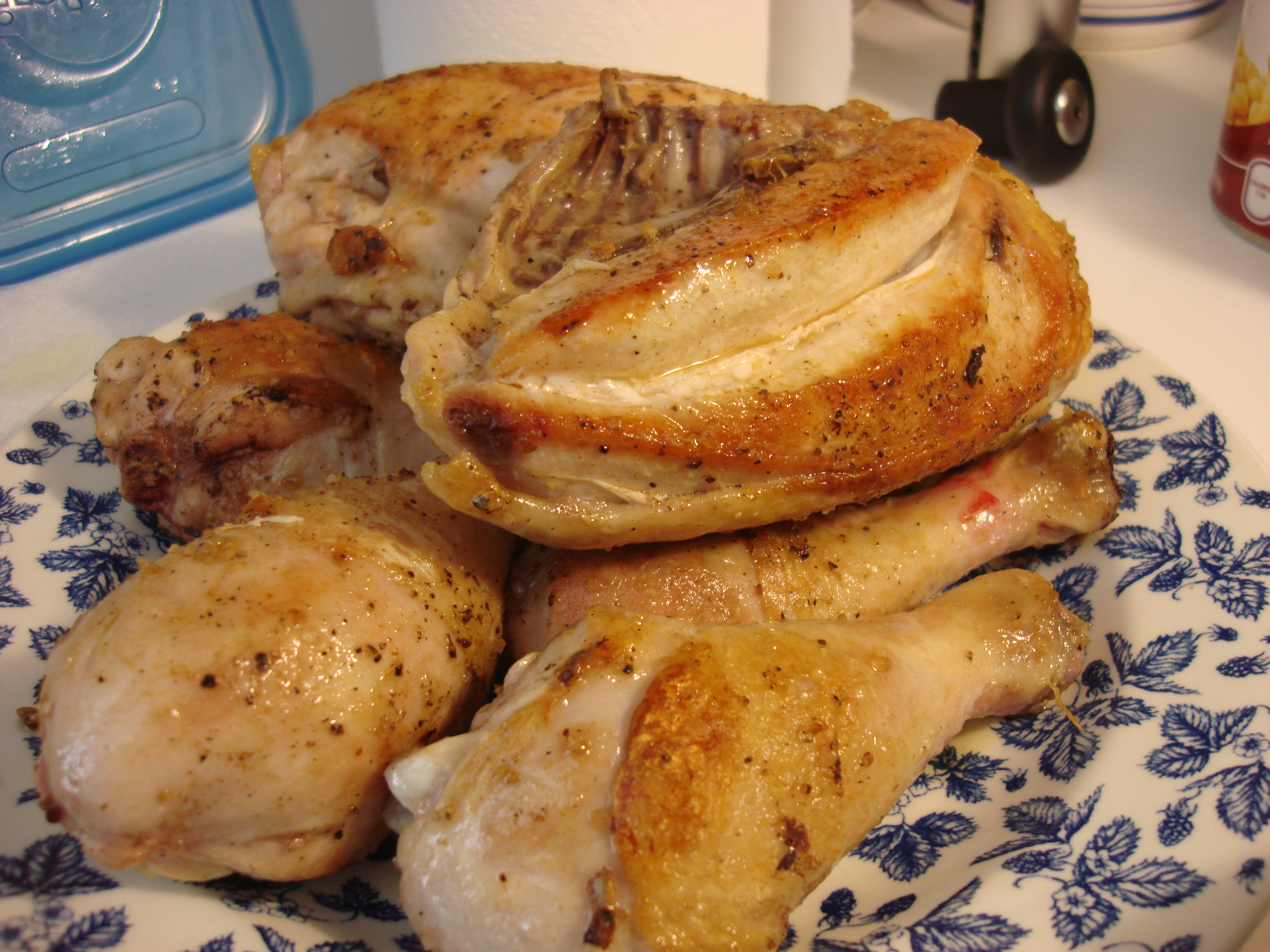 1 4-5 lb whole chicken, cut into large pieces, or bone-in chicken parts, skin removed