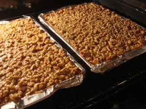Cover loosely and allow to rise 1-2 hours in a warm place. Again, we put it on top of our toaster oven when it’s on low.