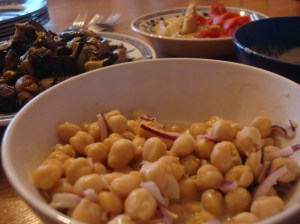 Preheat oven to 350°. Dip eggplant into (or brush with) olive oil until well-coated. Lay eggplant as flat as possible in oven dishes and bake for 20-30 minutes, turning occasionally, until eggplant is tender (I consider this a craft that is best learned by experience. Fortunately for me, I like my eggplant slightly browned, ‘cause I always seem to cook the hell out of it before it’s truly done. Don’t worry about a bit of overcooking.)