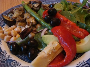I make this pretty often in winter; it’s a cross between an antipasto and a sandwich and is pretty cheap! I am admittedly not great at crunching numbers, but if I get a pound of eggplant at $3; a 1/2 lb. of feta at $1.80 (Costco bulk); and 8 sundried tomatoes at Fairway for about $2 – I’ve paid about $7 total (plus a bit for side stuff) and then I make four meals for myself out of it…well you do the numbers and tell me it doesn’t beat the bejesus out of the steak and broccoli lunch special at Asian Kitchen…