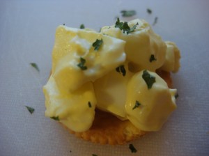 I cut off the crusts in a familial reflex (that’s what my parents used to do) but I realized that I didn’t have to! At any rate, the crusts became the bread crumbs for my meatballs later, so no matter.