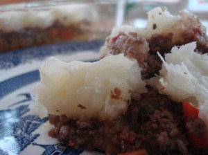 As a note (and call for advice): my dad and I are currently using the Verde Farms organic ground beef from Costco. The flavor is good, but it does have a fair bit of fat and the texture is a bit more fine than we like for things like meatloaf and meatballs and burgers (it’s okay for crumbled beef dishes). So this particular meatloaf is misshapen and reluctant to firm up and stick together for slicing purposes. It may be that I am doing something else wrong that could be corrected, so shout it out if you have an idea! The organic thing is important to me, in particular because of my son; any suggestions for a better ground beef available in Long Island would be most welcome.
