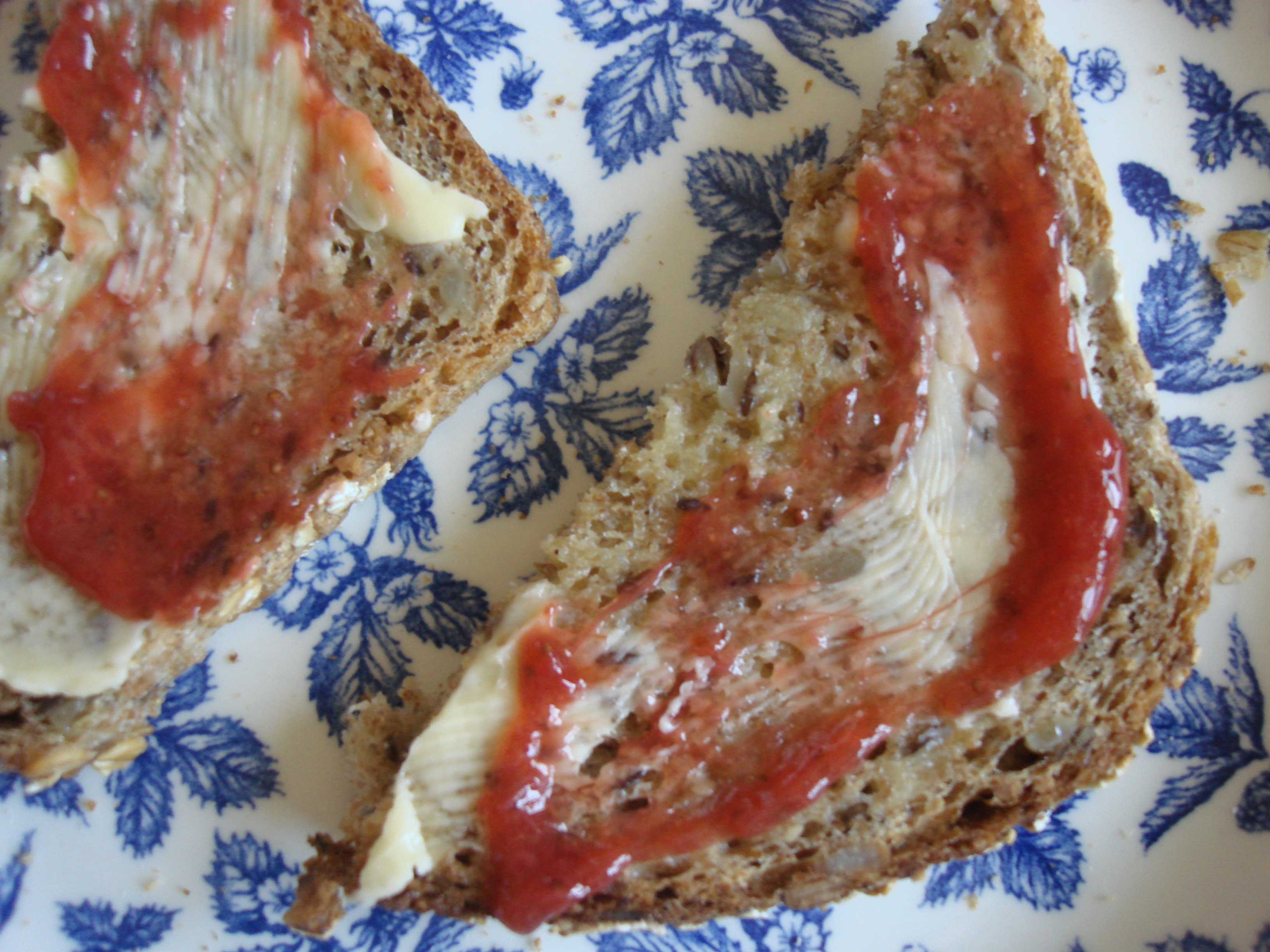 To test for gelling point, drop one teaspoon of jam on one of the chilled saucers and put back in the freezer for about a minute. When you take it out, the jam’s surface should wrinkle gently when pushed with your fingertip. If not, keep stirring and heating and try again in another five minutes or so, then try again with the remaining saucer.