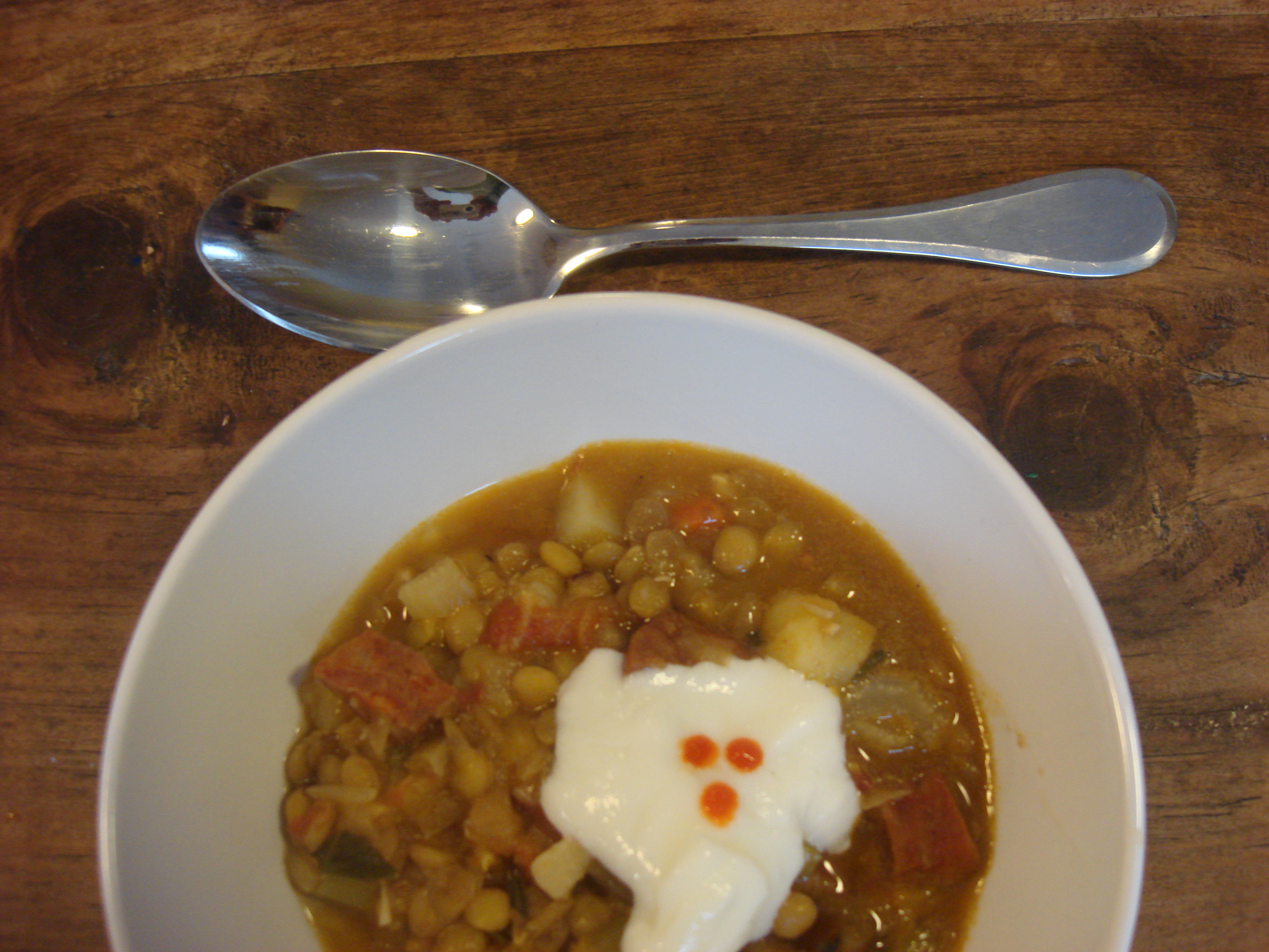Lentil Soup has got to be the best comfort food ever. It is rich and hearty and slurpy and — this version at least – just a bit spicy. You can use whatever scraps you’ve got around. You can give it a Middle Eastern flavor or Italian flair by varying the spices. Use a different type of sausage – like kielbasa – and some sage or rosemary for a more Eastern European style. Use no sausage at all and a dash of liquid aminos or veggie steak sauce and some red hot pepper flakes or chipotle for a vegetarian/vegan version. It will keep in the fridge for several days and packs up really nicely for an office lunch that will make you feel loved and valued.