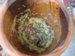 After prepping the lamb chops, place all adobo ingredients except oil in a mortar and pestle and grind down to a rough paste, adding oil a half teaspoon at a time until you reach a spreadable, but non-greasy texture.