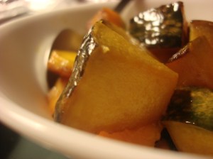 Wash calabaza rind thoroughly. Do not peel. Chop calabaza into 1.5” chunks. Sprinkle sparingly with salt.