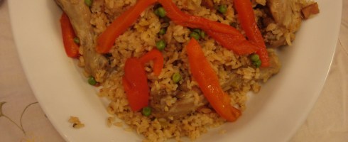 I didn’t mean to make arroz con habichuelas last week, but when I dashed into a Latin supermarket for something else, I was stopped dead by the presence of something that looked pretty close to Puerto Rican pumpkin (or calabaza, as we call it). The Fates intervened with my dinner plans.