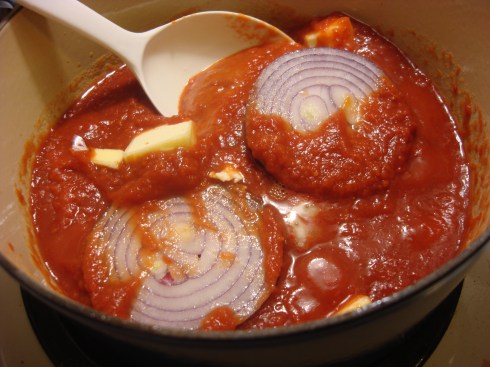 Sauté onion and garlic in a saucepan, drop in frozen meatballs and a tin of crushed tomatoes with your preferred herbs and spices and in 20 minutes of lively simmer – gorgeous sauce for spaghetti and meatballs!